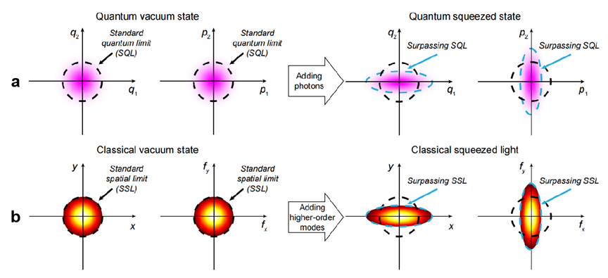 首次提出了量子压缩态的经典光类比,构建了经典压缩态光场的理论模型,以“Structured light analogy of quantum squeezed states”为题,发表于Light: Science & Applications。https://www.nature.com/articles/s41377-024-01631-x;https://rdcu.be/dXy0E