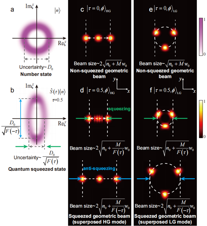 本工作通过经典几何模的叠加,实现了几何模光束尺寸“压缩”/“放大”的效果,光斑尺寸演化与量子压缩态概率分布演化的对应过程,可通过压缩参数τ(F(τ)函数)定量描述。得益于“压缩”机制,新型模式可减少模态串扰,实验传输图像的误码率为0.4%。本工作以“Squeezed Coherent States of Geometric Beams”为题,发表于ACS Photonics,入选“Rising Stars in Photonics”专辑。https://doi.org/10.1021/acsphotonics.4c01366