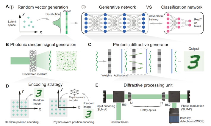 生成式神经网络(Generative Models)近年来成为机器学习和人工智能领域的热点技术,在图像生成、文本生成等科学与艺术领域具有广泛应用,同时重新定义了机器智能的边界。这类模型通过学习数据的统计分布,从中采样随机噪声生成新的信息。然而,目前大多数生成式神经网络依赖数字计算硬件实现,受限于计算效率和能耗问题。