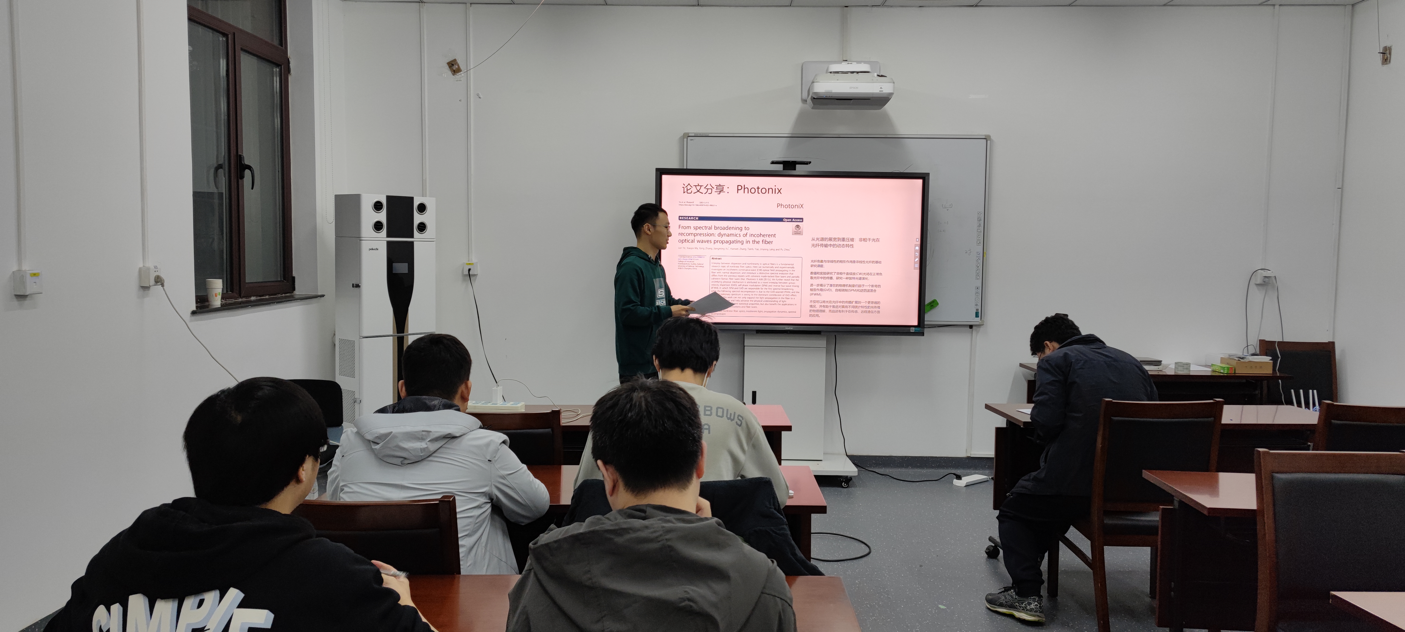 Guan Wang shares the work: "Fiber based Traffic Monitoring using Urban Fiber Link" on group meeting. We report a fiber-based method to detect traffic vibrations, obtain traffic flow information and analyze different traffic pattern during several special periods. We validate the method's authenticity by comparing it with traffic data from a navigation service. Besides, we demonstrate the advantage of new method in precision, anonymity and no authorization. The group members discuss the contents of report and provide valuable revision suggestions.