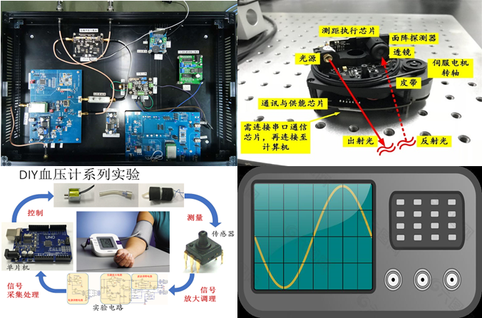 As an experimental exploration course to the major of Measurement and Control Technology & Instrument, it is closely related to the courses of department of precision instrument. All experiments have corresponding interest attraction and application background. The course will transfer the professional charm, stimulate professional interest, explore professional knowledge, and let students understand the important application prospects of related technologies. This course is divided into three parallel classes, and will be taught by three teachers. Students complete 3 sets of 15 basic experiments within 2 weeks and 3 challenging experiments within 1 weeks (at least one is required to complete). Some of the experimental topics are list here. (1) Disassembly, assembly and measurement of scientific instrument: through this process, students can understand the structure and function of the scientific instrument. (2) Signal transmission and recovery: understanding different modulation and demodulation methods, and the time-domain and frequency-domain characteristics of modulated signals intuitively. (3) Optical measurement in autonomous vehicle: help students learn and conduct the non-contact distance measurement via optical techniques. (4) Exploring the big world with small MEMS sensors: calibrate the MEMS pressure sensors, make measurements of blood pressure, observe and measure the structure parameters or the sensors. Based on 15 basic experiments, set 3 optional challenging experiments: (1) Blind parking toy car: under the premise of not seeing the toy car directly, students can control the moving direction of the toy car and park the toy car in the designated assessment area. (2) Obstacle avoidance of vehicle guided by LIDAR: let the LIDAR assembled by the students go out of the laboratory and into the open and complex terrain space, then guide the moving target to the designated position through measurement and control. (3) Blood oxygen saturation and pulse rate measurement: using hardware and software system.