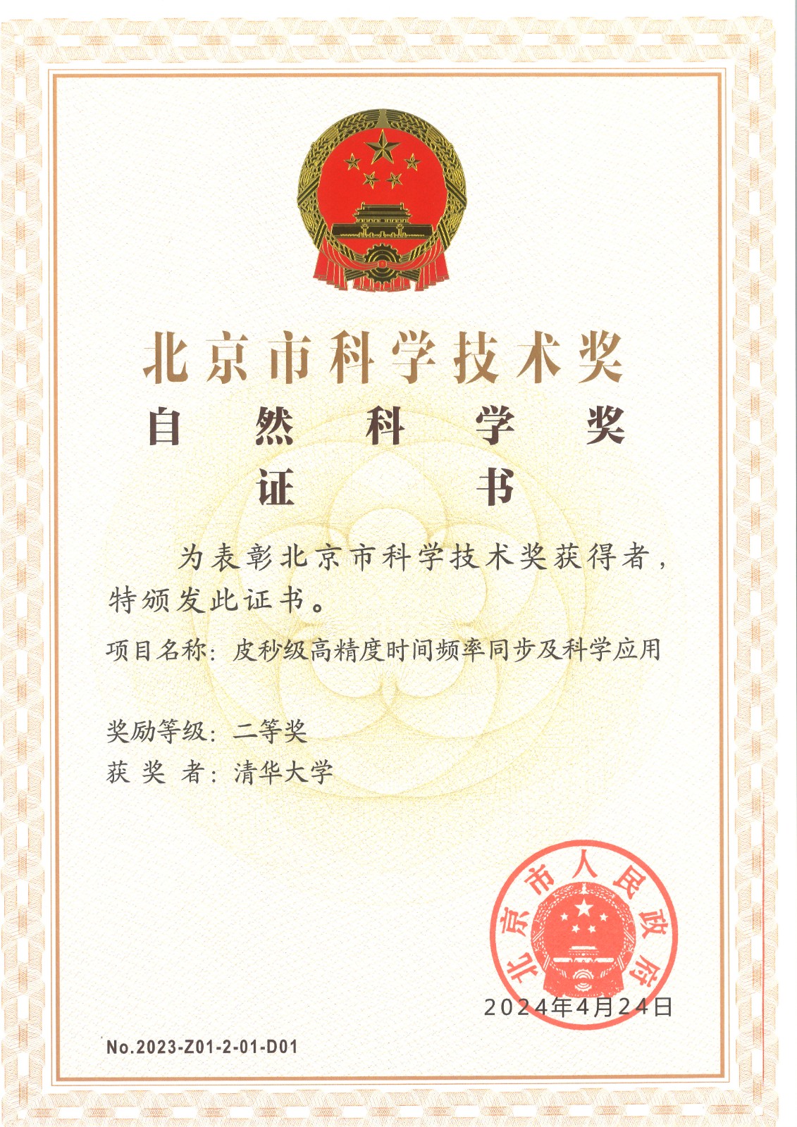 课题组成果“皮秒级高精度时间频率同步及科学应用”获北京市科学技术奖自然科学二等奖。