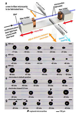 光纤熔丝(fiber fuse)效应表现为炙热亮点突然出现并沿光纤内激光传来的方向延烧,损伤后光纤内部纤芯分解为气泡,无法继续传光。本课题组研究光纤熔丝的机理、特性与抑制方法:首次观察到光纤熔丝在无机械破坏干预下自发发生所需的光纤温度与所传激光功率之间的定量关系,分析出熔丝损伤自发发生的主要物理机制;同时通过研究熔丝损伤的特性“变废为宝”,获得经济且高效的光纤内微腔制造方法。